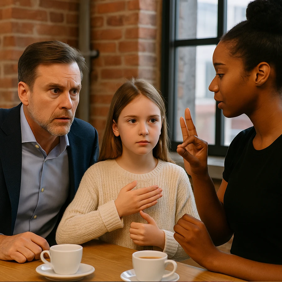 La joven mesera se acercó con una sonrisa y tomó la orden. Pero al ver a la niña, notó algo especial en su lenguaje corporal. En lugar de limitarse a hablar, levantó las manos y comenzó a comunicarse en lenguaje de señas.