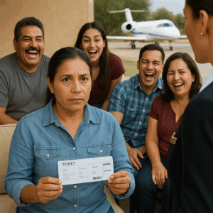 “Toda mi familia se rió cuando vieron mi billete “raro”, pensaban que era una estafa… hasta que el empleado del aeropuerto me miró con sorpresa y dijo: “Señora, su jet privado la está esperando en la pista número tres.”