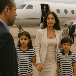 “Quiso exponer a su exmujer para ridiculizarla, pero ella apareció en un jet de lujo con dos gemelos idénticos al hombre que la despreciaba. Lo que reveló frente a los invitados convirtió su venganza silenciosa en la lección más costosa de su vida.”