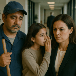 “Lo despidieron frente a todos, sin saber que aquel conserje pobre había sido el héroe de su hija. Cuando la verdad salió a la luz, la mujer más rica de la empresa entendió que no todo lo que brilla se compra con dinero.”