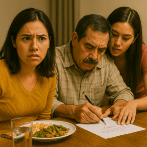 “Durante la cena familiar, vi sin querer a mi padre y a mi hermana firmando un documento con mi nombre falsificado… pero cuando descubrí lo que intentaban hacer con mi firma, mi mundo entero se vino abajo de la forma más inesperada.”