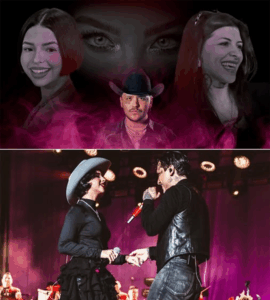 En medio de la canción, un grupo del público comenzó a corear el nombre de Ángela Aguilar, lo que generó un momento de pura emoción. Nodal, con una sonrisa leve y los ojos brillantes, respondió: