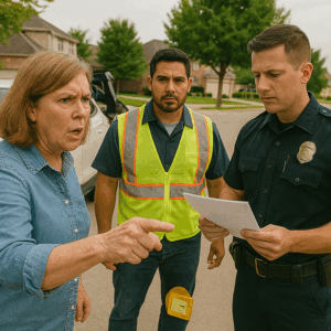 —Aquí está la orden de remolque —dijo ella, extendiendo un documento con sello del “Comité de Propiedades HOA”.
