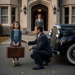 De pronto, el rugido de un motor rompió el silencio. Un coche de lujo se detuvo bruscamente frente a la reja. La puerta se abrió y descendió un hombre imponente, vestido con traje oscuro, su mirada dura como el acero.