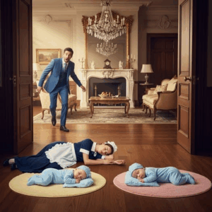 Así, entre cubetas y trapos, se encontró con gemelos de apenas semanas de vida, frágiles y llorosos. Pasó de pulir plata a preparar biberones, de barrer alfombras a arrullar con desesperación. Y cualquier error, por pequeño que fuera, terminaba en gritos… o en moretones ocultos bajo sus guantes amarillos.