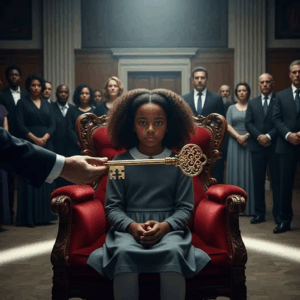 Las puertas de la notaría se cerraron con un eco metálico. Maya, una adolescente de 17 años, entró con paso firme, aunque su corazón latía con fuerza. Su piel negra, su cabello rizado y su ropa sencilla hicieron que las miradas de la familia Almeida se clavaran en ella como cuchillos.