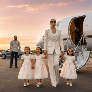 Años después de humillarla tras el divorcio, él volvió a burlarse… pero la encontró bajando de un jet privado con trillizas idénticas y una sonrisa que escondía la verdad que lo dejaría temblando