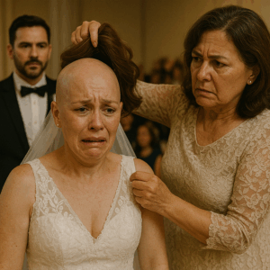 El día de mi boda, frente a todos, mi suegra intentó avergonzarme arrancando mi peluca. Pero lo que sucedió después demostró que el amor verdadero y la valentía son más poderosos que cualquier intento de crueldad.