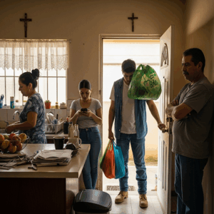 Colocó todo en la encimera, esperando al menos una mirada de gratitud. Pero nadie se giró. Su padre veía televisión, su madre navegaba en el celular, y su hermana menor charlaba con amigos en línea.