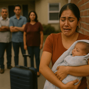 Samantha Rivers apretaba contra su pecho a su pequeño hijo recién nacido, intentando que no sintiera el frío de la calle ni el temblor de sus propias lágrimas. A sus pies, una maleta pequeña contenía lo poco que había logrado rescatar: unas cuantas mudas, pañales y un biberón vacío. Pero el verdadero peso lo cargaba en el corazón: la traición de aquellos que se suponía debían protegerla.