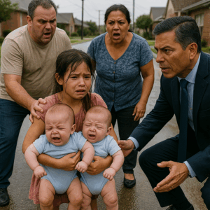 Lucía, descalza y tiritando, abrazaba con fuerza a los gemelos mientras las lágrimas corrían por sus mejillas. La calle estaba vacía, el viento helado la envolvía y no sabía a dónde ir.