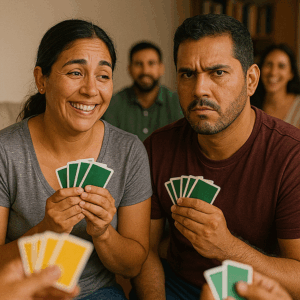 Durante la noche de juegos con nuestros amigos, mi esposa bromeó diciendo: “Jamás volvería a casarme contigo.” Todos rieron… hasta que respondí con una sola frase que hizo que el silencio llenara la habitación y que su secreto más grande saliera a la luz.