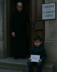 “El amanecer en Chicago de aquel día parecía normal, hasta que el padre Tomás abrió las puertas de la iglesia y encontró a un niño solo, temblando, con una nota que apenas decía su nombre; lo que sucedió después reveló un misterio que aún mantiene en vilo a todos.”