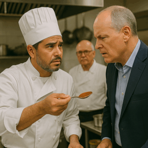 “El chef viudo y padre soltero estaba a punto de ser despedido por servir un plato ‘fuera del menú’, hasta que el director general probó su salsa secreta —la receta que su difunta esposa le enseñó— y cambió su destino para siempre.”
