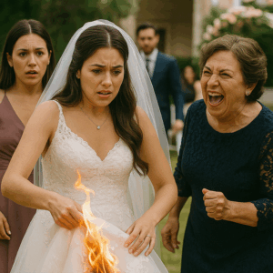 El día en que mi vestido nupcial ardió a segundos del “sí, quiero”: la risa de mi futura suegra, el velo chamuscado, un secreto oculto entre encajes, y cómo un incendio mínimo desnudó alianzas, traiciones silenciosas y una verdad que nadie se atrevía a pronunciar