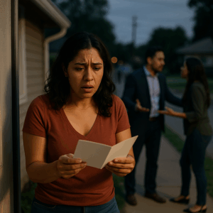 El día que abrí la tarjeta que alguien dejó en mi puerta y descubrí que mi esposo llevaba cinco años con otra familia, la discusión se volvió tan seria que ya no hablábamos de infidelidad, sino de quién quería seguir siendo yo