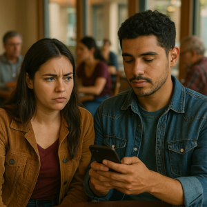 Nos sentamos en el sofá, puse la película, y a los diez minutos su teléfono comenzó a vibrar. Lo tomó, desbloqueó la pantalla y empezó a escribir. Al principio pensé que sería algo urgente. Pero siguió. Y siguió. Riendo solo, sin mirar la pantalla de la televisión ni medio segundo.