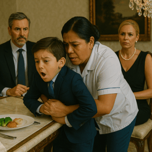 Samuel, nervioso, llevó un trozo de carne a la boca. Masticó mal, tragó de golpe. En segundos, sus ojitos castaños se abrieron de par en par. Llevó las manos al cuello, intentando respirar, pero el aire no pasaba. El sonido de su silla cayendo interrumpió la cena.