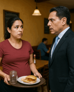 Imagina la escena: un salón modesto, paredes pintadas con colores deslucidos, el olor a comida casera impregnando el aire. Allí, en medio del bullicio de un restaurante cualquiera, un hombre acostumbrado a trajes de diseñador, autos de lujo y banquetes millonarios se detiene en seco. Sus ojos, acostumbrados a analizar balances y detectar oportunidades de inversión, no logran procesar lo que tienen frente a sí. La mujer que aparece con una bandeja en las manos, el cabello recogido apresuradamente y una mirada cansada, no es una desconocida. Es su exesposa. Y está embarazada.