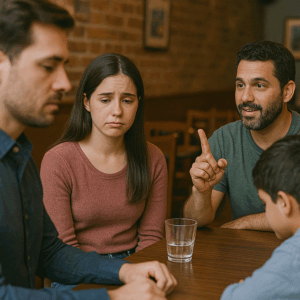 Esteban se levantó sin siquiera despedirse. Tomó su abrigo y salió, dejando a Lucía sola frente a una taza de café frío y una herida invisible.