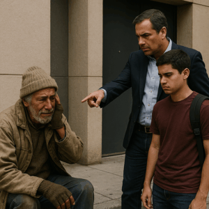 —Papá… me siento un monstruo. Ayer humillé a un mendigo que me pidió ayuda. Hoy vi a este hombre casi morir en la calle y entendí… podría haber sido él, podría haber sido cualquiera.