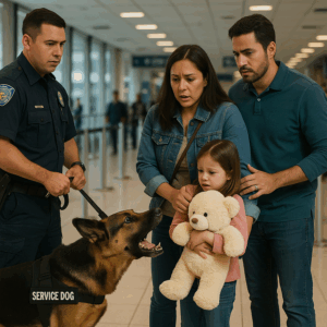 😱 Increíble pero cierto: en un aeropuerto internacional, un pastor alemán entrenado detectó algo extraño en el oso de peluche de una niña. Los padres reaccionaron con furia, pero cuando los oficiales revisaron el juguete, el hallazgo dejó helados a todos los presentes. Nadie imaginaba semejante secreto oculto.