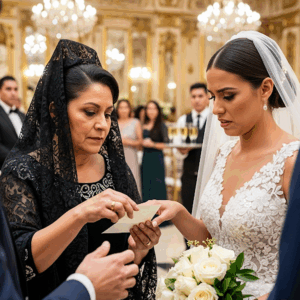En medio de la recepción, la madre de Martín, elegante y seria, se acercó a Isabel. Sin pronunciar palabra, le entregó un pequeño sobre. La novia, desconcertada, lo abrió de inmediato.