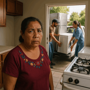 Antes de que pudiera preguntar nada, ya estaban dentro, y tras ellos bajaron dos hombres fornidos que comenzaron a cargar cajas y herramientas. No tuve tiempo ni de reaccionar cuando vi cómo desconectaban el refrigerador, arrastrándolo hacia la puerta.