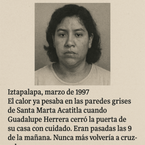 Iztapalapa, marzo de 1997. El calor ya pesaba sobre las paredes grises de Santa Marta Acatitla cuando Guadalupe Herrera cerró con cuidado la puerta de su casa. Eran pasadas las nueve de la mañana. Llevaba una bolsa sencilla y un cuaderno donde anotaba los pagos que aún le debían. Salía a cobrar a una exjefa que, según contaba, le debía varias semanas de sueldo.