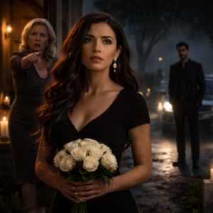 En el funeral de mi abuela, mi madrastra me susurró que “me fuera antes de que fuera tarde”… pero su voz se quebró cuando las luces del cementerio parpadearon, un coche oscuro se detuvo sin hacer ruido, y yo levanté la mano para señalar quién me había estado esperando en la sombra desde mucho antes de que ella creyera controlar mi vida.