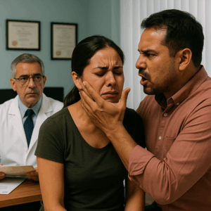 Pero Alejandro no esperó. Se giró hacia su esposa, y con un movimiento brutal, le dio una bofetada. El sonido seco resonó en el consultorio como un disparo.