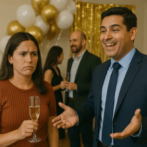 La sala estaba llena de risas, copas y aplausos.