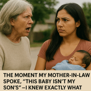 En la mesa familiar, la suegra lanzó la frase más cruel: “Ese bebé no es de mi hijo”. Lo que nadie imaginaba era que la joven madre ya estaba preparada. Su reacción, fría y calculada, se convirtió en la venganza más devastadora y comentada de la familia.