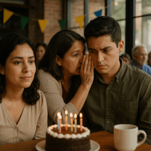 En mi fiesta de cumpleaños en el café, escuché a mi madre susurrarle a mi hermano: “Mientras todos están aquí, ve y cámbialo…” — y ese instante marcó el principio del secreto que destruyó todo lo que creía saber de mi familia.