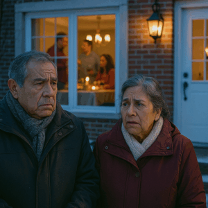 “Encontré a mis padres ancianos tiritando afuera de mi propia casa, mientras mis suegros celebraban dentro como si fueran los dueños. No entendí nada… hasta que escuché la conversación que lo cambió todo y me hizo elegir entre el silencio de la vergüenza o la voz del amor.”