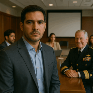“Entré en la sala de conferencias y el almirante —mi suegro— sonrió con arrogancia”: la historia real de cómo un hombre común se enfrentó al militar más temido del país… y descubrió que detrás de aquella sonrisa había un secreto que podía destruir su matrimonio y su carrera para siempre.