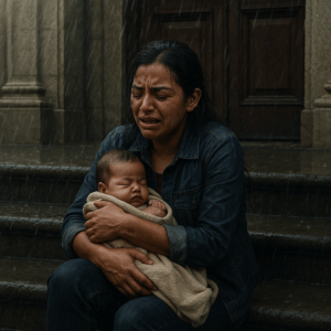 Sin más explicaciones, fue llevada a las escaleras de la mansión y abandonada junto a su hija recién nacida. La lluvia empapaba sus cabellos, el frío calaba hasta sus huesos, y cada gota que caía sobre Lily era como un recordatorio de su soledad.