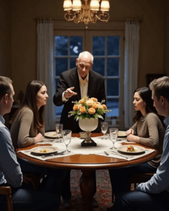 La cena transcurría con el protocolo habitual: copas de vino tintineando, halagos generosos para sus hermanos James y Sophia, y las habituales puyas hacia ella. Entre lámparas brillantes y vajilla impecable, la tensión se acumulaba.