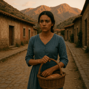 El sol descendía lentamente sobre San Miguel de la Sierra, tiñendo de cobre los montes secos que rodeaban al pueblo. Luciana caminaba por la vereda principal con un vestido de algodón azul desvaído y una cesta de pan recién horneado. Cada paso era acompañado por las miradas burlonas de los vecinos.