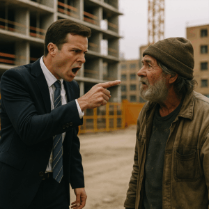 Ese día, un hombre con ropa desgastada y rostro cansado se acercó tímidamente a la zona de trabajo. Llevaba una mochila vieja y pedía algo de comida a los obreros. Antes de hablar siquiera, un supervisor gritó con desprecio: “¡Lárgate, indigente! Aquí no tienes nada que hacer”.