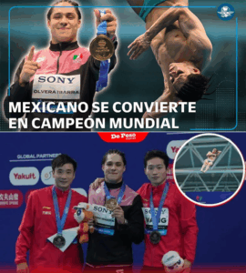 Lo más impresionante de la victoria de Olvera fue que, a pesar de la presión de competir contra los clavadistas chinos, quienes son conocidos por su dominio en este deporte, Osmar se mantuvo sereno y ejecutó cada salto con una precisión perfecta. En el último salto, su clavado final fue tan espectacular que dejó a todos los presentes sin aliento. La respuesta de la multitud fue inmediata: un estruendoso aplauso que celebró la victoria de Olvera.