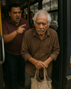 Algunos pasajeros bajaron la mirada, incapaces de intervenir. Otros asentían, indiferentes. El anciano permanecía en silencio, apretando su bolsa de tela contra el pecho.