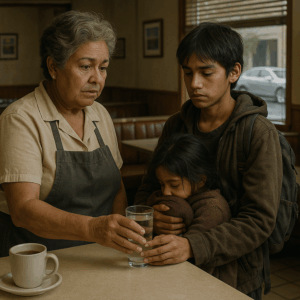 No pidieron mesa. No pidieron comida. El muchacho se quedó de pie frente al mostrador, inmóvil, como si temiera que un paso más lo rompiera todo.