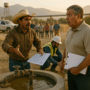 Mostró un plano antiguo con una línea azul que conectaba mi terreno con el sistema que abastecía a más de 3.000 personas.