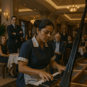 Aquella tarde, en el Golden Royal Hotel, el piano dejó de ser un adorno de lujo y se convirtió en el instrumento que reveló el verdadero valor de una mujer que, con sus manos, no solo limpió pasillos… sino que también tocó el alma de todos los presentes.