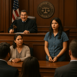 Frente a él se encontraba Mariana Torres, una adolescente de 16 años. Su rostro estaba pálido, pero sus ojos brillaban con una firmeza que contrastaba con su apariencia frágil. Tenía las manos esposadas, no por un crimen cometido, sino por un sistema que necesitaba culpables fáciles.