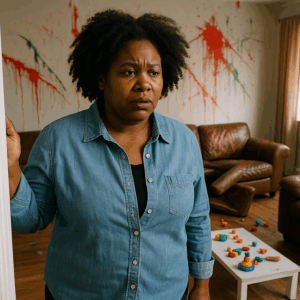 Al entrar al salón principal, se quedó paralizada. Las paredes, antes impecables, estaban cubiertas de pintura roja y verde. Los sillones de cuero estaban rasgados, y juguetes rotos se amontonaban en el suelo.