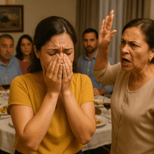 Entonces ocurrió lo que nadie esperaba. Mi suegra, fuera de sí, levantó la mano. Un murmullo de incredulidad recorrió la sala; algunos invitados se levantaron de sus sillas. Yo, paralizada, apenas alcancé a cubrirme el rostro. Sentí que el mundo se derrumbaba.