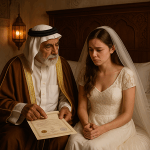 Pero entonces ocurrió algo que nadie pudo prever. Cuando el notario salió de la habitación, el jeque guardó silencio. La miró fijamente y dijo: