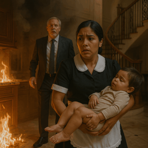 Un incendio arrasó la lujosa mansión Collins. Invitados y familiares huyeron desesperados, convencidos de que nada se salvaría. Sin embargo, la criada apareció de entre las llamas cargando algo que nadie esperaba. Lo que llevaba en sus manos cambió para siempre la reputación del millonario y destapó un secreto escandaloso.